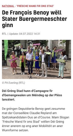 De 5. November hunn d’Linda Gaasch, de François Benoy an ech fir déi gréng Stad Lëtzebuerg konkret Proposen virgestallt fir eng klimaneutral Stad Lëtzebuerg. Hei meng Présentatioun: