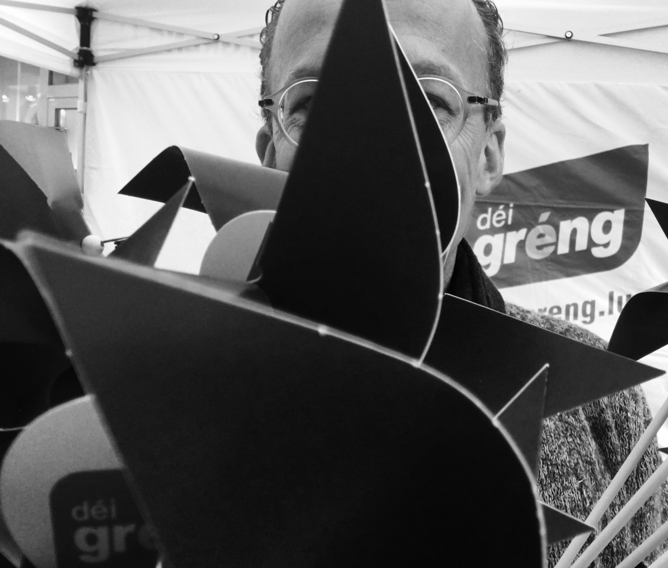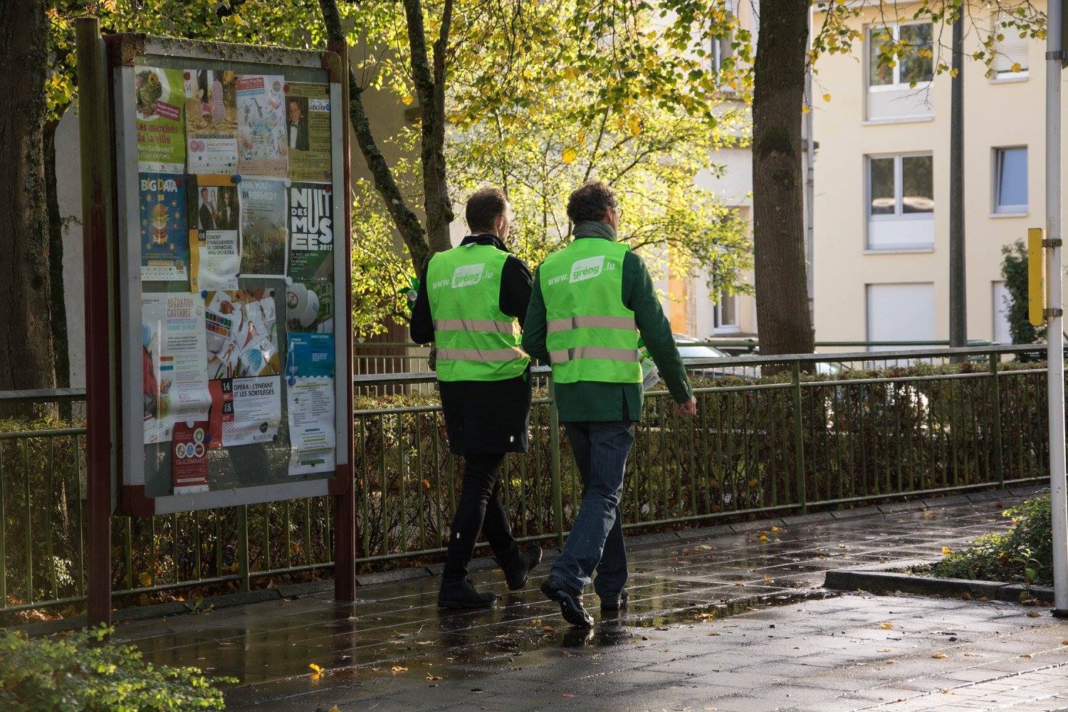 Dono hun ech meng Binette um Kierchbierg an um Kiem verdeelt. D’Leit sollen wëssen ween hire Gréngen aus dem Quartier ass. Net just fir den 8. Oktober, mee och dono well gréng wierkt besser mateneen. Wivill Stëmmen meng Bréifkëschten Aktioun ausmécht (Gewënn/Verloscht) weess ech net. Mee eppes ass sécher: elo wou Jiddereen mech erkennt ass et net méi fir dobaussen mam Fanger an der Nues ze wullen.