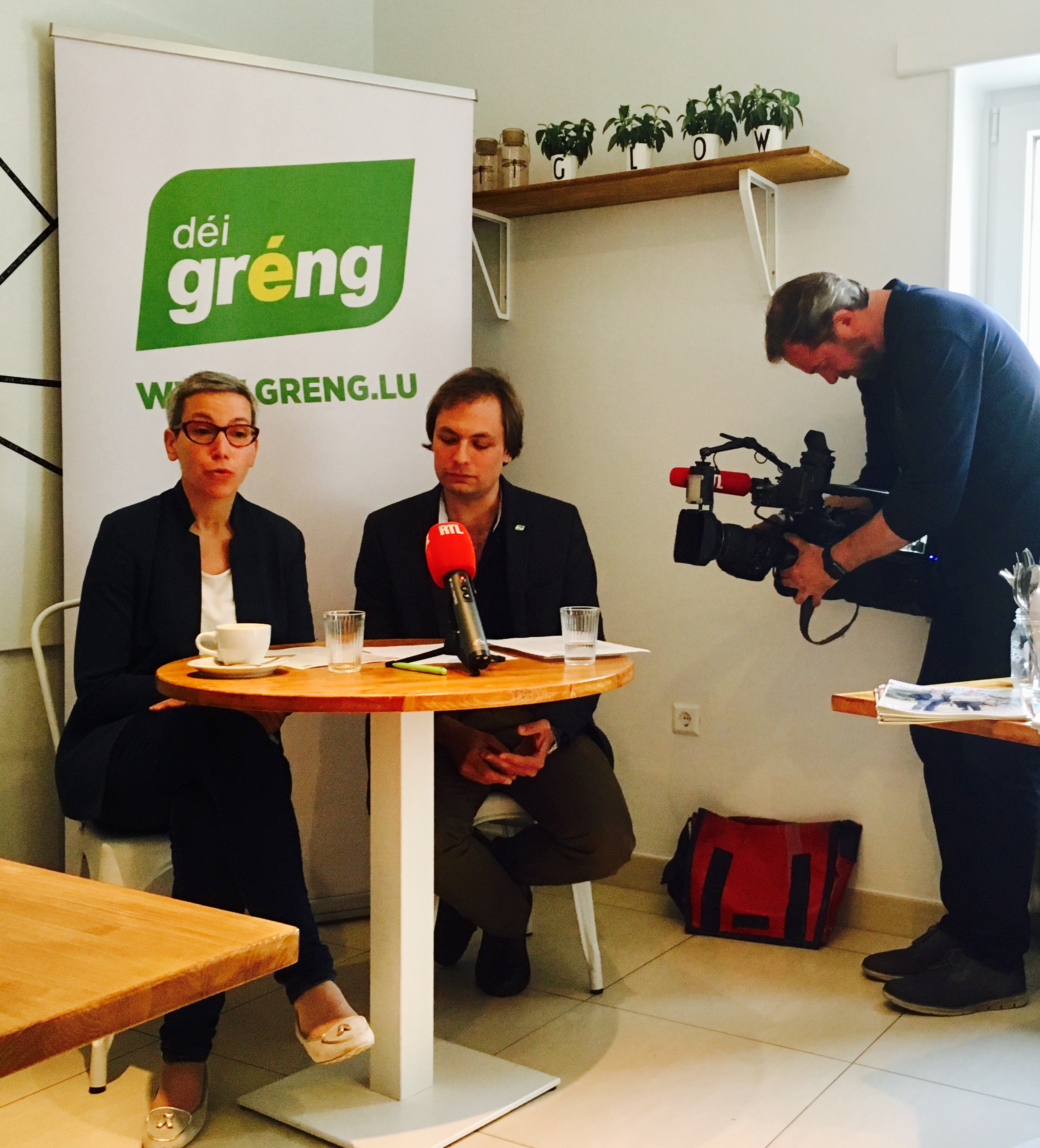 Vill Medien waren do. No enger kuerzer Fotosession mat routiniertem Posing an ons Beachflag opriichten, de Cargobike parken, d’Dokumentatioun verdeelen an d’mise en scène orchestréieren, hun d’Claudie Reyland, de Carlo Back, d’Sam Tanson an de François Benoy ons/hir Statements ofginn an explizéiert. Dono hun nach Journalisten gefrot a kruten geäntwert. Schlisslech sinn ons zwee Spëtzekandidaten interviewed ginn.